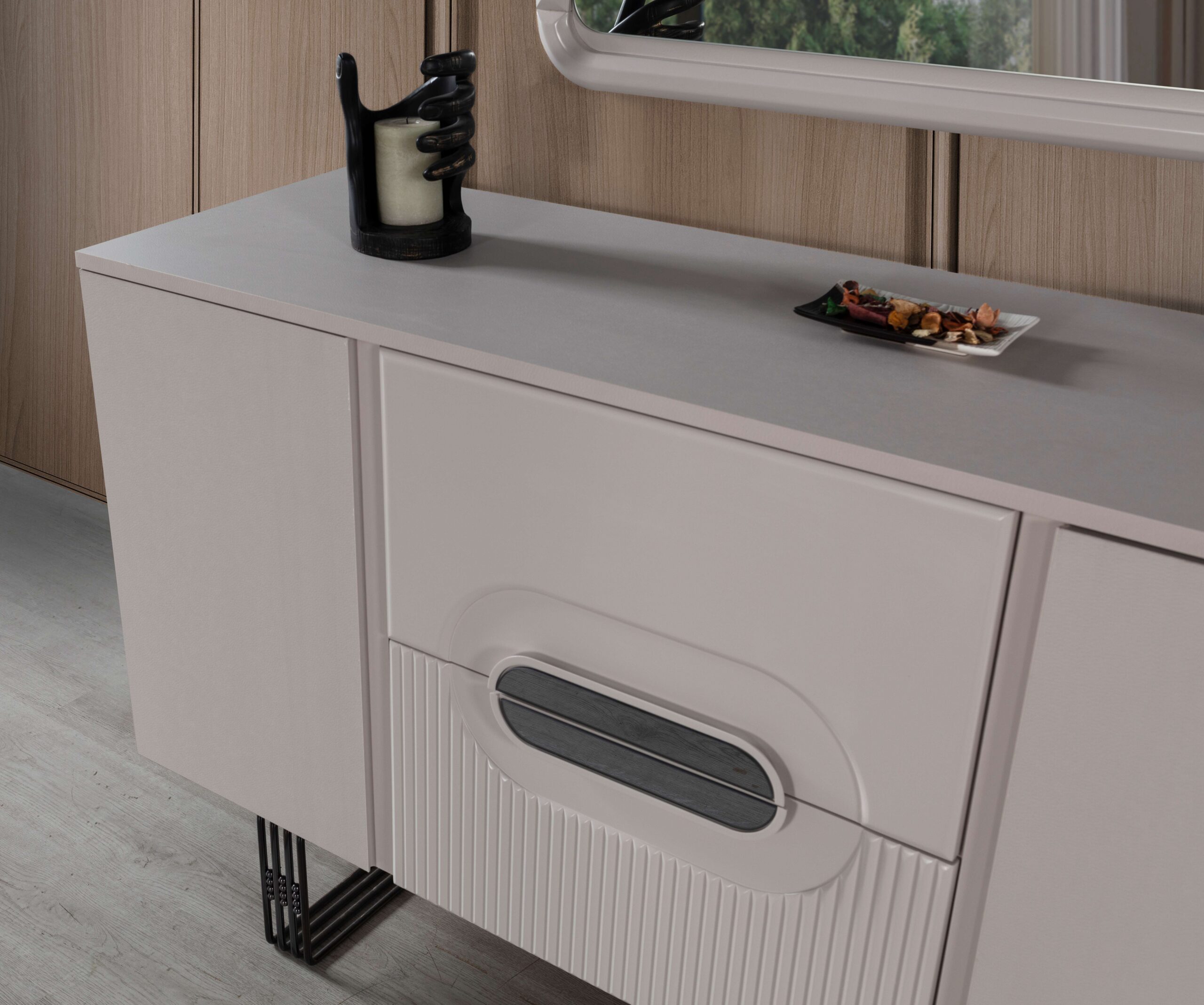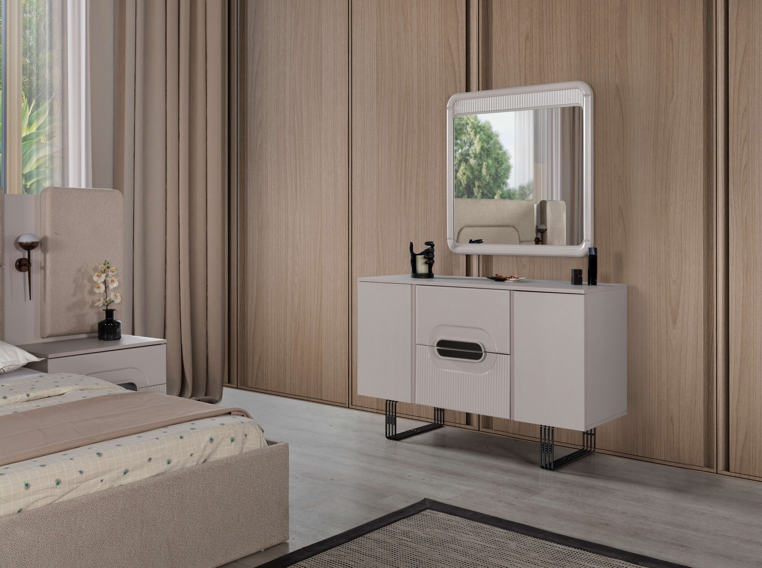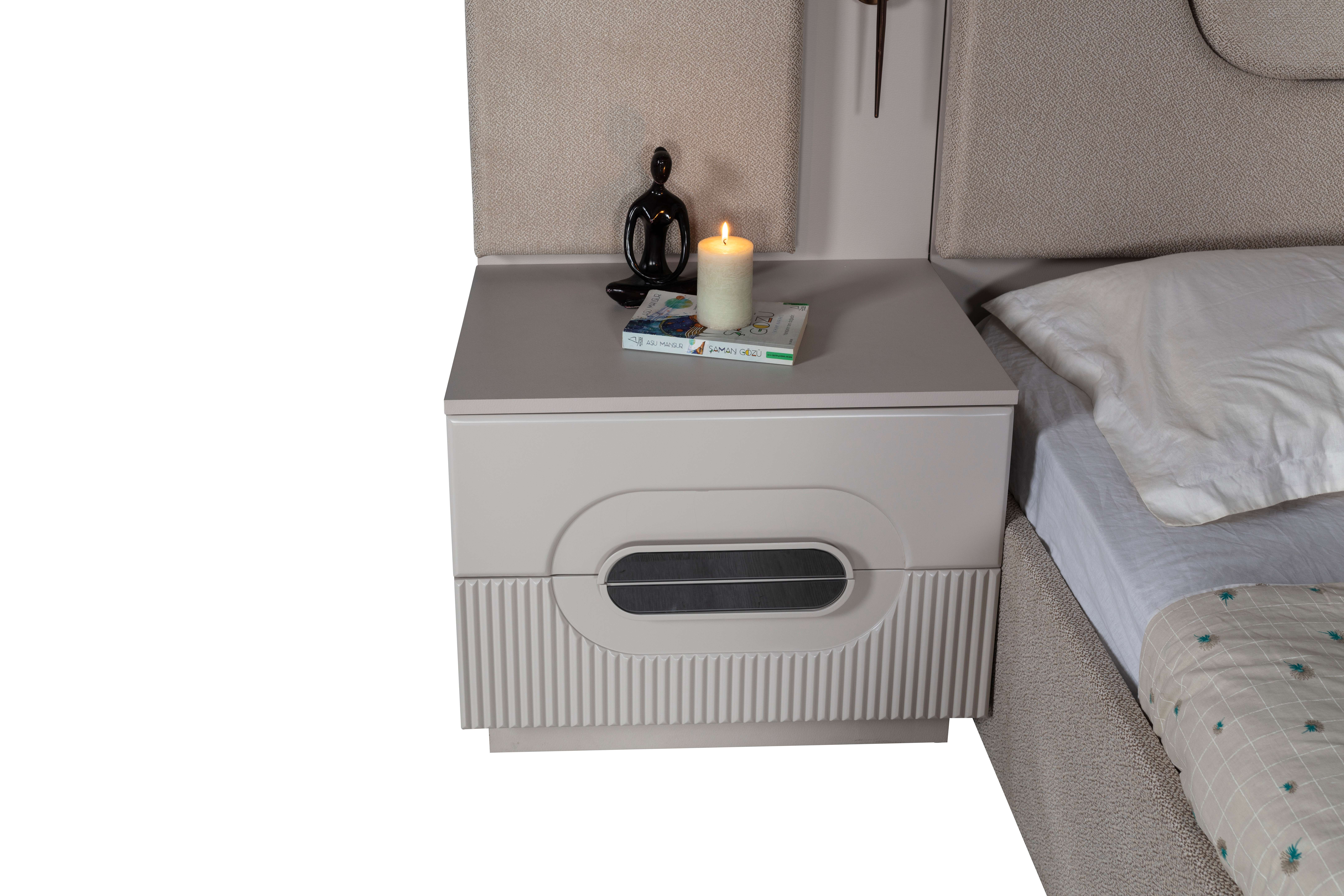 Bu koleksiyondaki yataklar, konforu ön planda tutarken aynı zamanda şık bir duruş sergiler. Geniş ve kullanışlı gardıroplar, komodinler ve şifonyerler, yatak odanızda düzeni sağlamak için ideal çözümler sunar. Minimalist detaylar ve akıllı depolama alanları, hem estetik hem de işlevsellik açısından mükemmel bir denge sağlar.